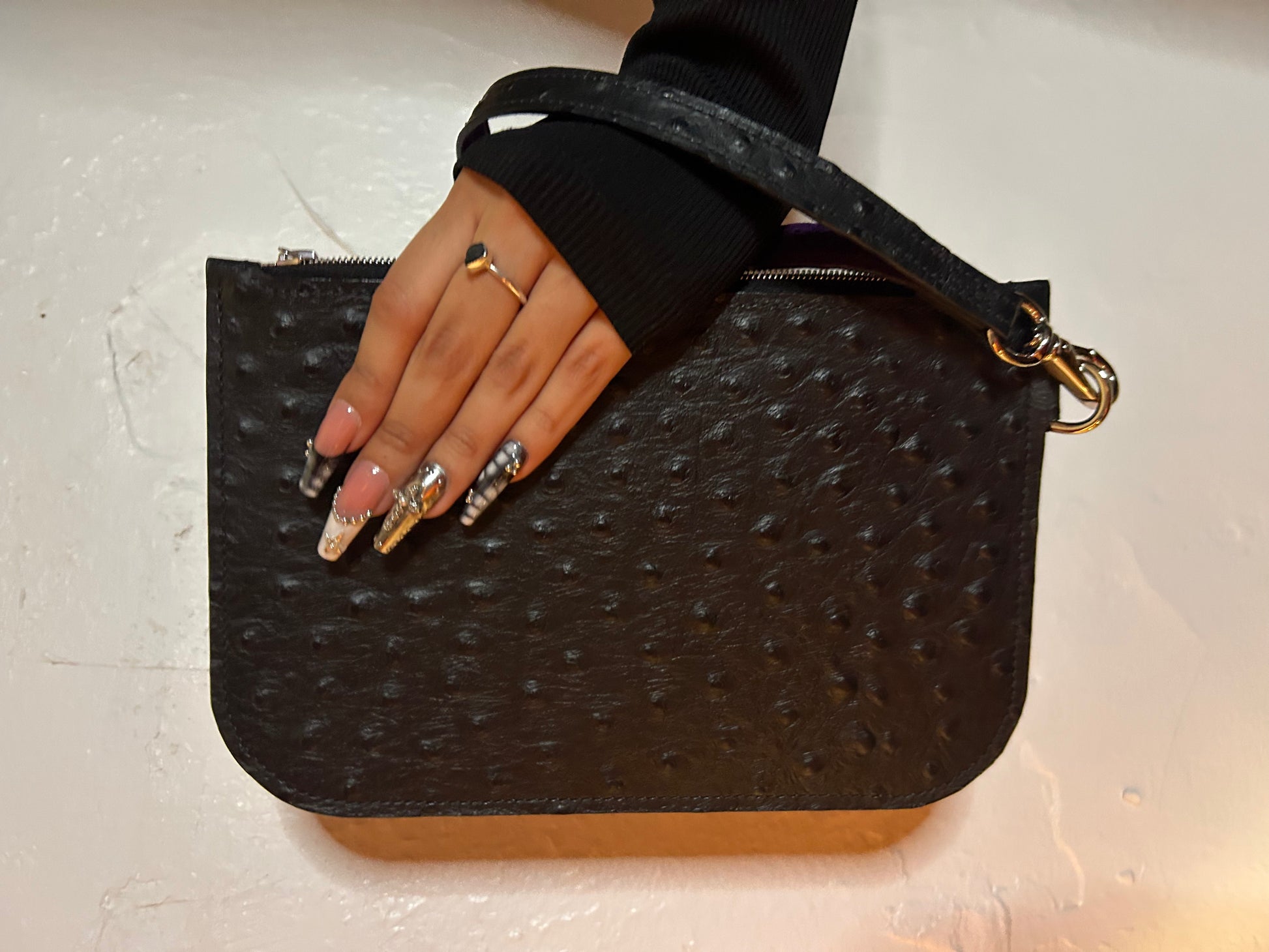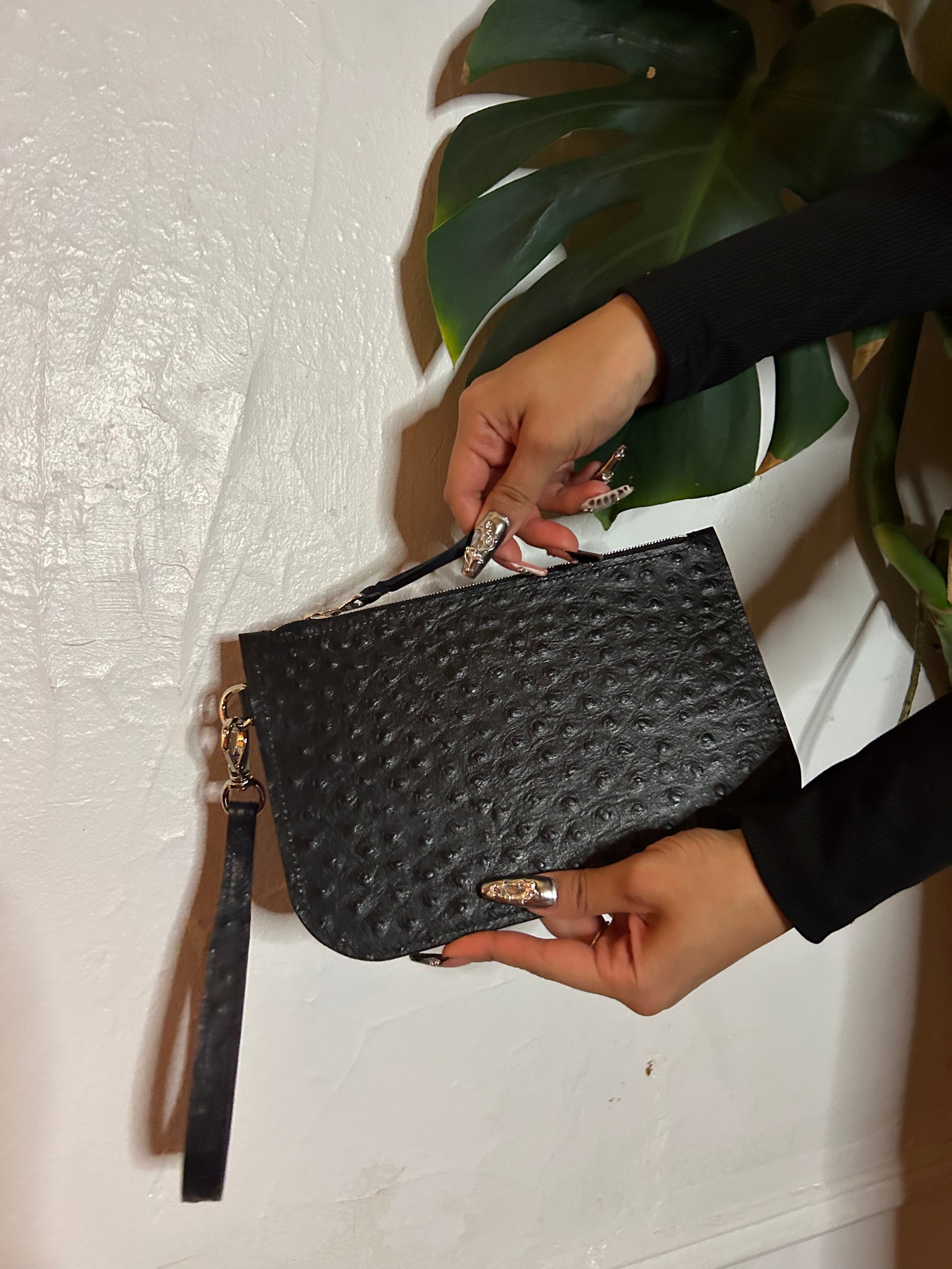 Embossed Ostrich Pouch